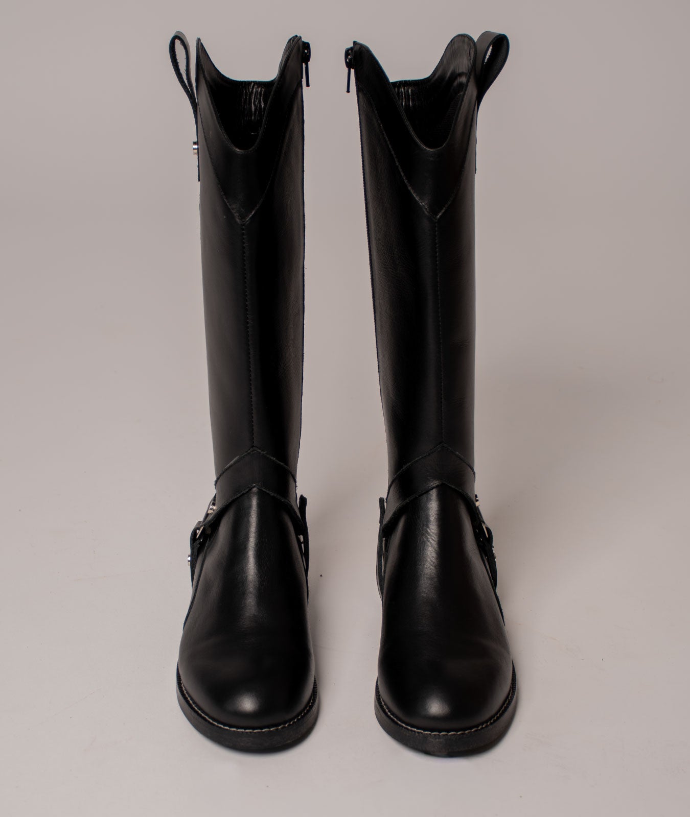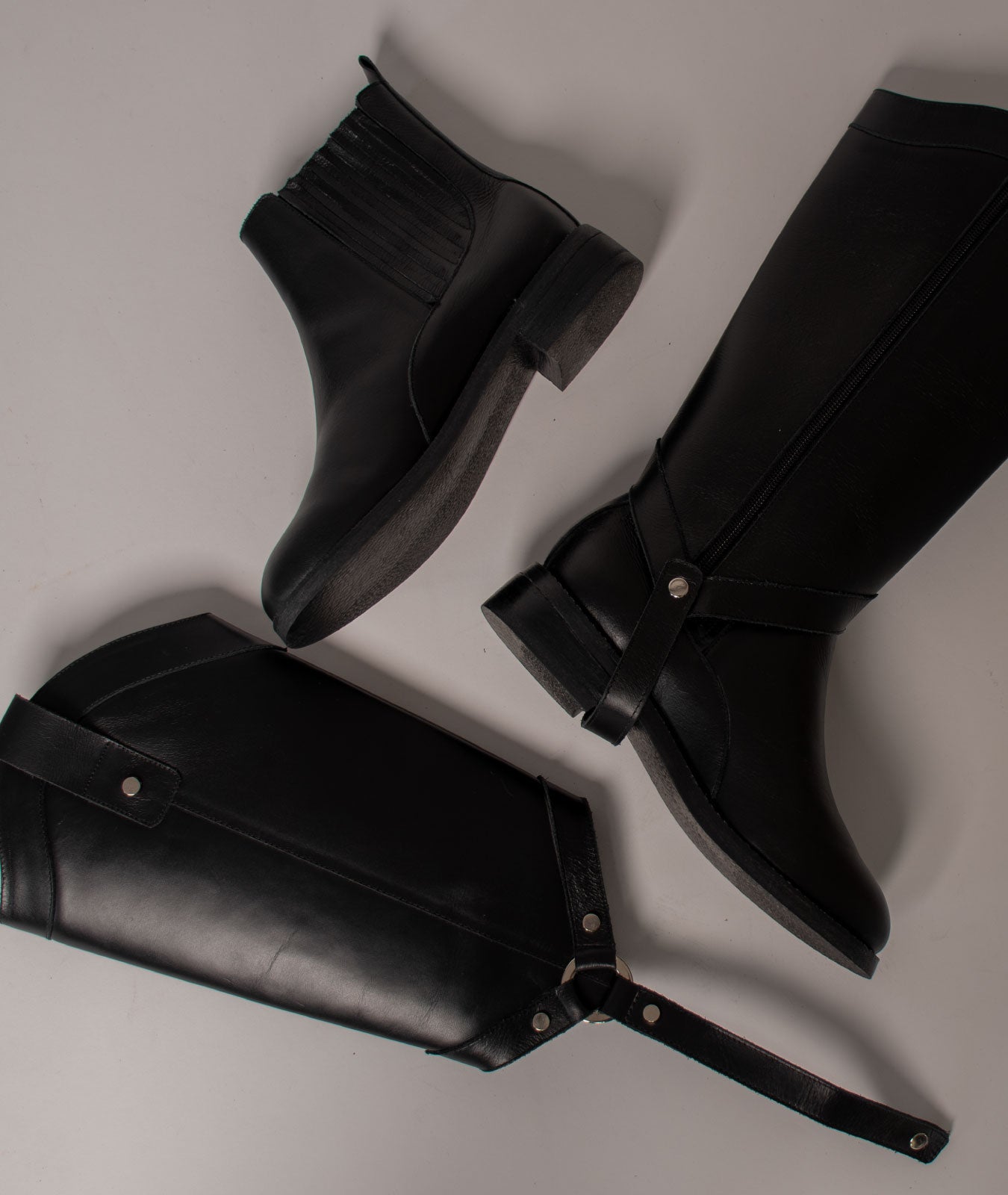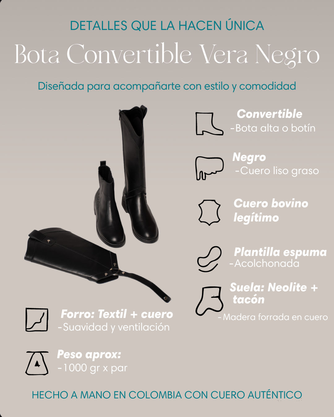 Bota convertible Vera negro: elegancia artesanal en cuero. Úsala como caña larga o doblada para un look versátil y atemporal.