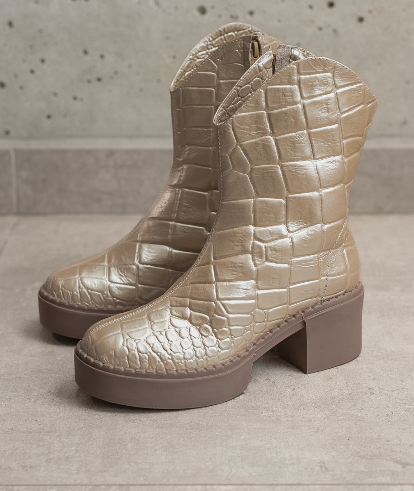Los botines texanas Montana talco capturan la esencia del estilo western con un toque más urbano y clásico. Hechos en cuero legítimo con detalles clásicos vaqueros, estos botines son ideales para mujeres que buscan carácter, comodidad y durabilidad. Perfectos como botas vaqueras para mujer, su diseño se adapta a múltiples climas, siendo una gran elección como calzado para lluvia o frío moderado. Su suela robusta ofrece firmeza y estilo en cada paso.